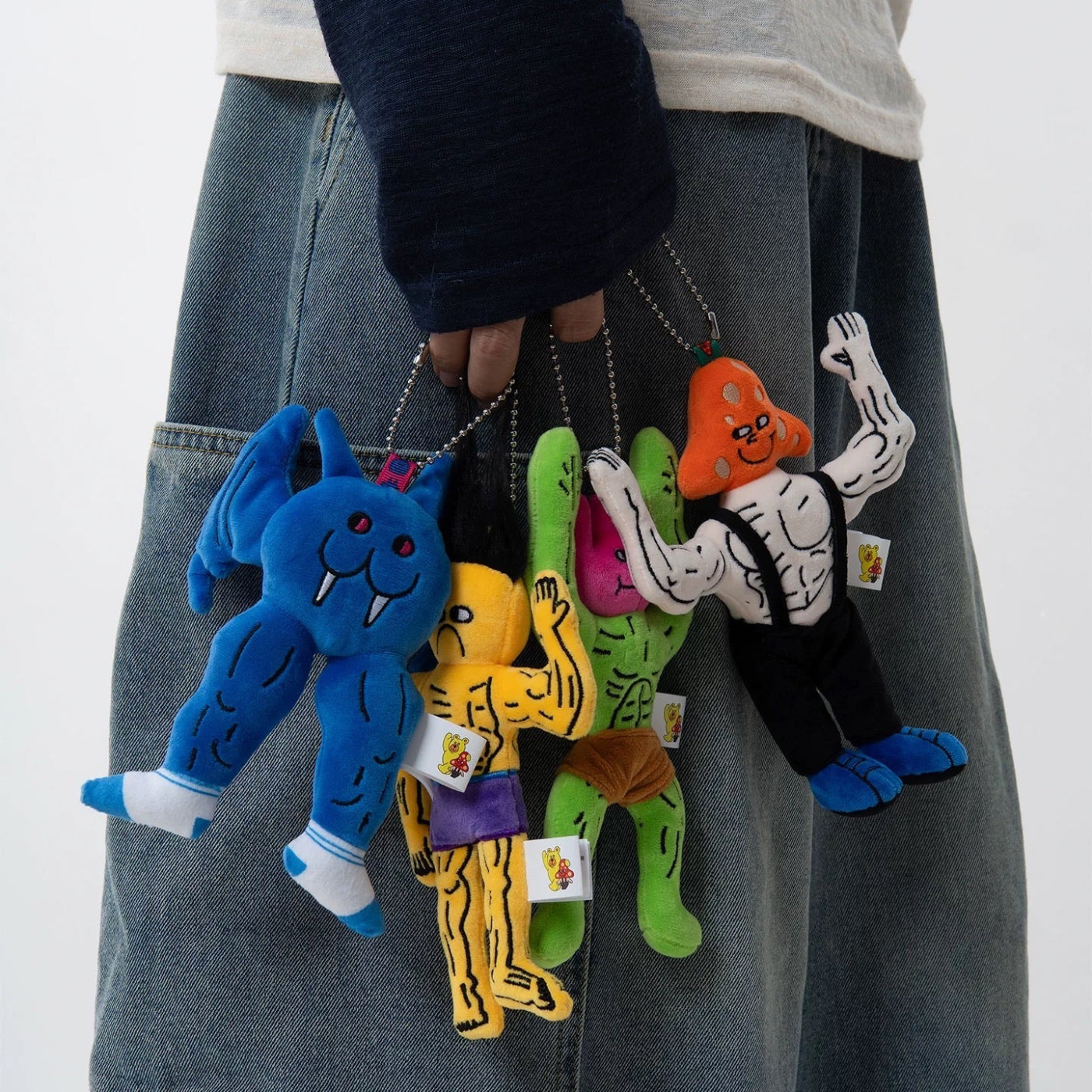 This plush bag charm features a bold sculptural character inspired by street culture and gym aesthetics. Lightweight and soft, it can be attached to backpacks, gym bags, or tote bags.